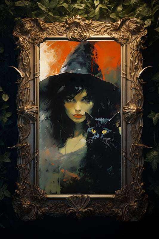 Witch and Familiar Watercolor Art Print