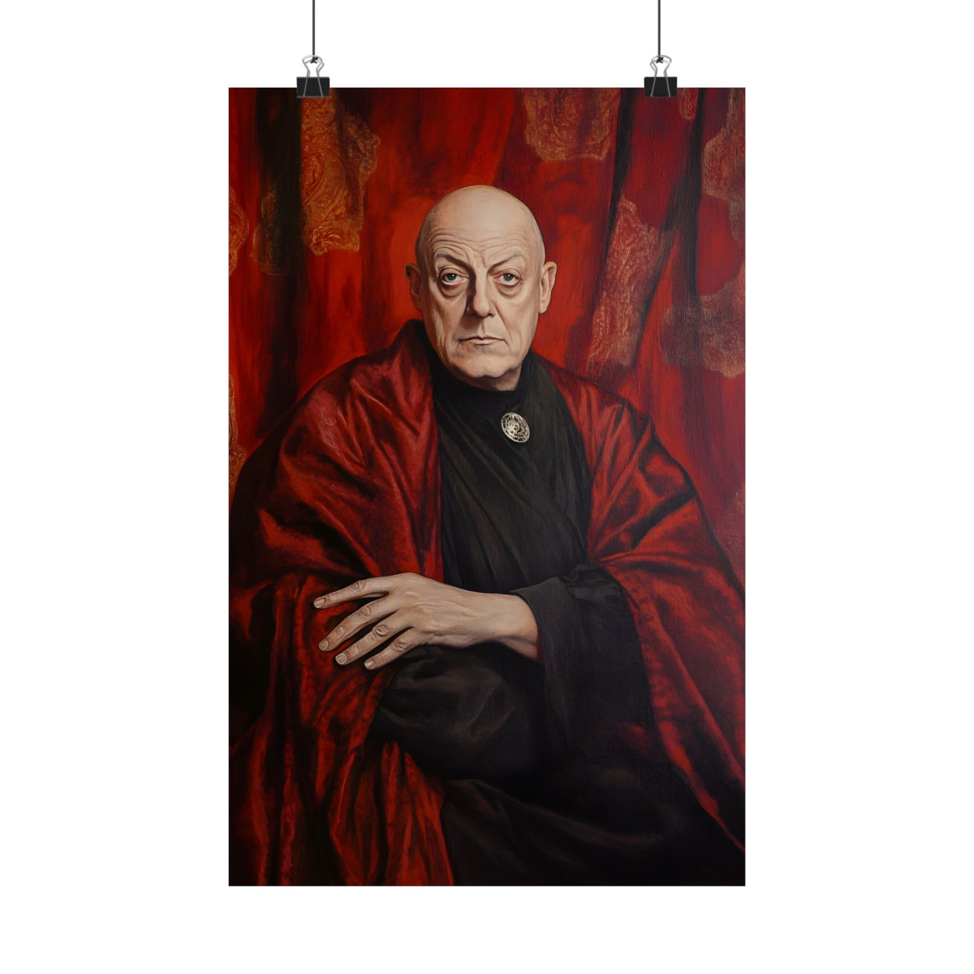 ✨ Step into the Scarlet Shadows of Occult History ✨ This Aleister Crowley Art Print immortalizes the "Great Beast" in his iconic red robes, seated before a blood-hued curtain—a scene steeped in the drama and danger of his esoteric legacy. A founder of Thelema, provocateur of the occult revival, and a figure shrouded in myth, Crowley’s influence pulses through modern ritual magic, counterculture, and the shadowed corners of history.