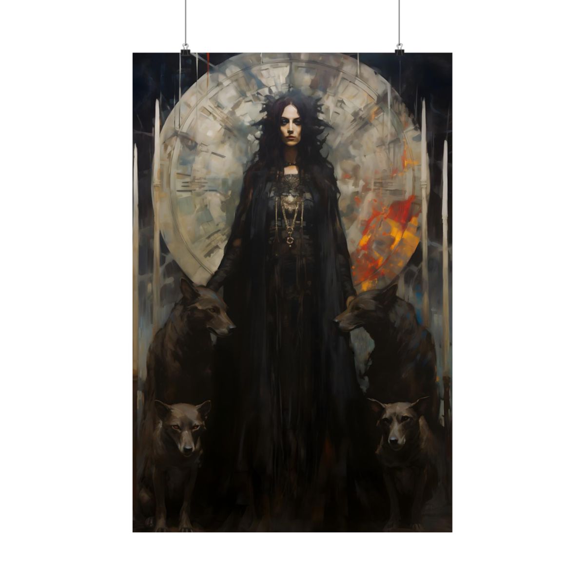 Enter the enchanted realm of ancient mysticism with our spellbinding Hecate art print, capturing the essence of the revered Goddess of Magic, Witchcraft, and Crossroads. With her hounds by her side, Hecate embodies the enigmatic forces that guide us through life's intricate journey. This art print invites you to embrace the mysteries of the night, where intuition meets wisdom and power intertwines with magic.