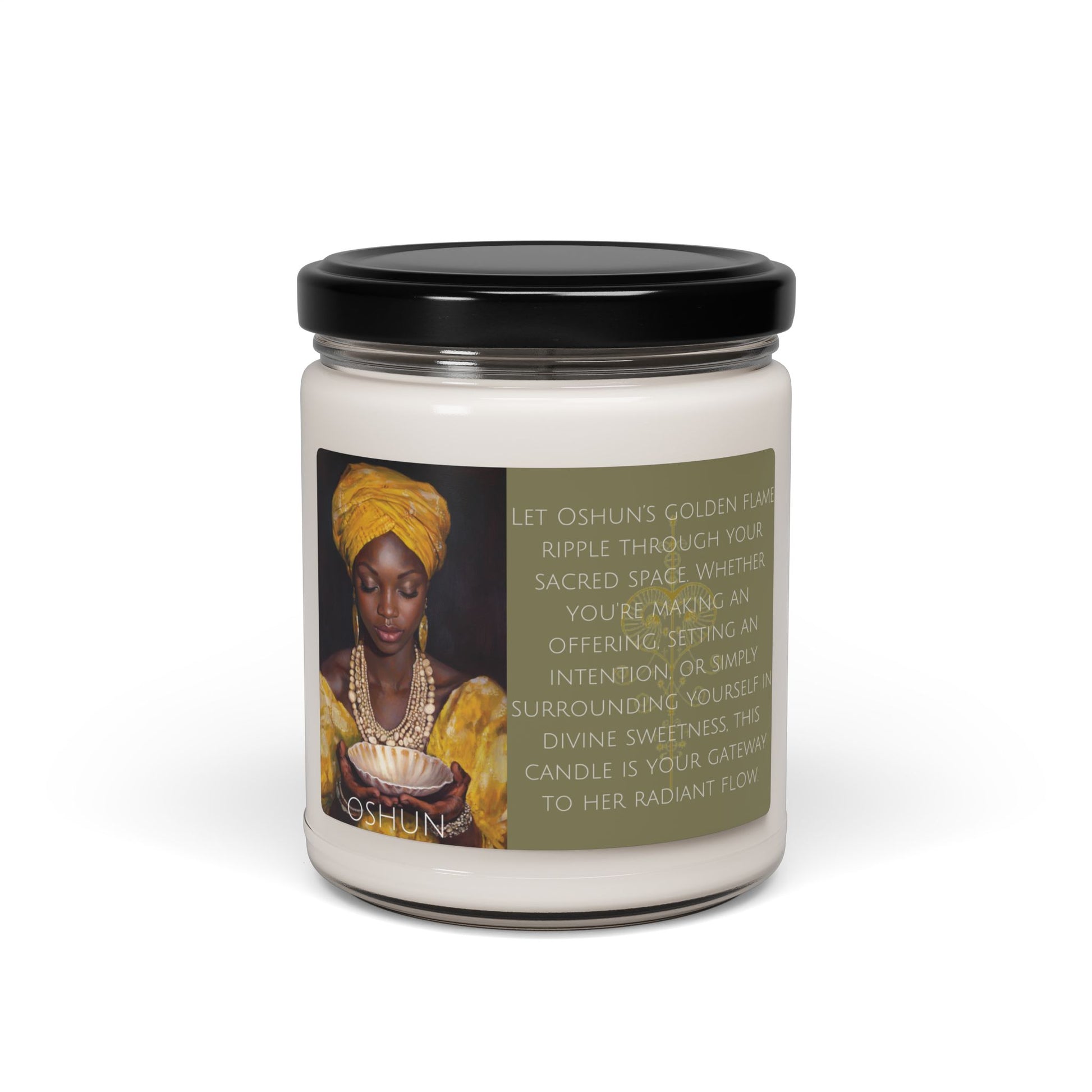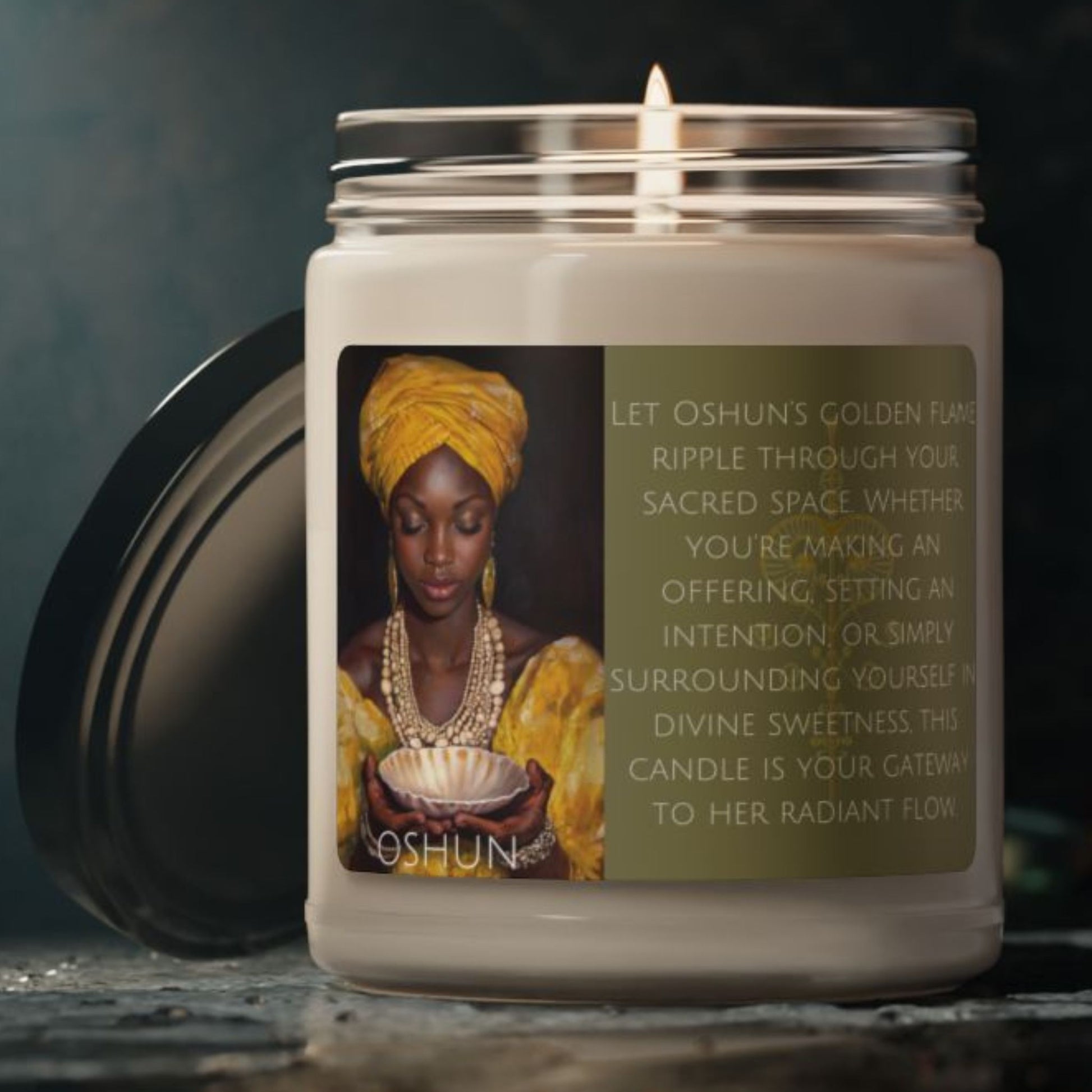Summon sweetness, sensuality, and sacred flow with our Oshun Candle, inspired by the radiant Yoruba Orisha of love, beauty, and fresh waters. Oshun dances through rivers, mirrors, and moonlight—governing all that glows golden and nourishes the soul. She is the embodiment of feminine power, flirtation, fertility, and joy, beloved by those who honor the divine feminine in her richest form. As one of the most venerated Orishas in Yoruba, SanterĂa, and other African Diaspora traditions, Oshun is known to bless her devotees with love, prosperity, creativity, and emotional healing. Her altars often overflow with honey, oranges, cinnamon, sunflowers, and sweet tropical fruits—offerings that please her playful and indulgent spirit.