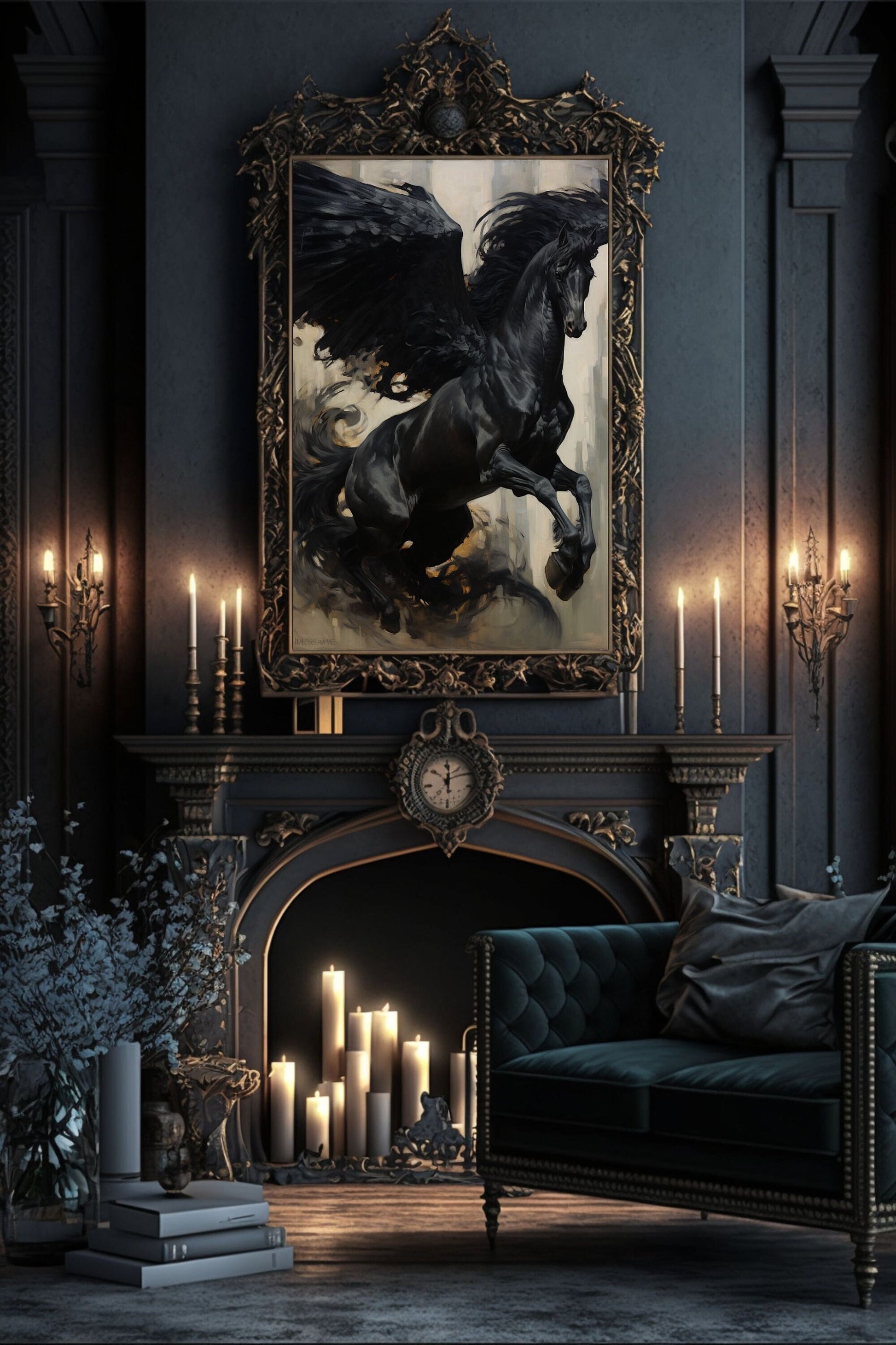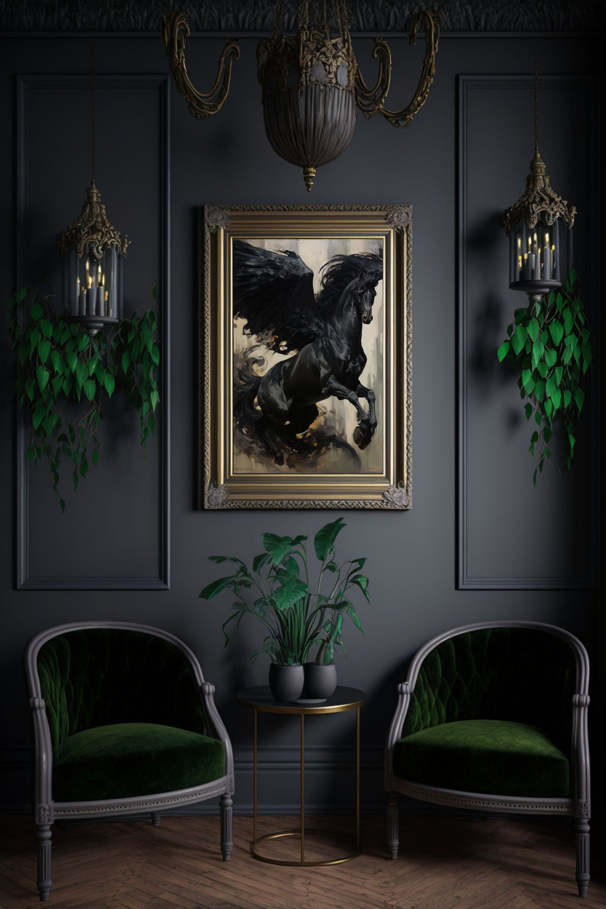 Venture into the realms of sleep and shadow with our "Dreams Unbridled" art print, capturing the enigmatic allure of the Nightmare, the iconic winged black horse. For those who find beauty in the mysterious and power in the ethereal, this piece is a passport to the haunting spaces between wakefulness and dream.