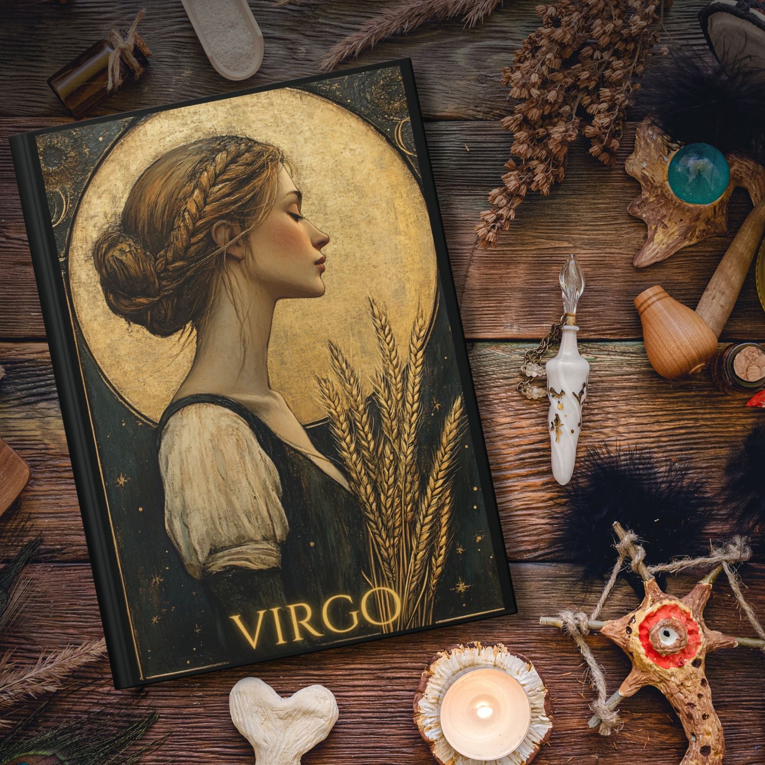 ✨ The Gilded Zodiac Journal Collection ✨ Celebrate the cosmos with the Virgo journal, part of the series of hardcover journals adorned with gold artwork illustrations, designed to honor the mystique of the stars. Each journal is a celestial tribute to your zodiac sign, blending astrological elegance with everyday magic.